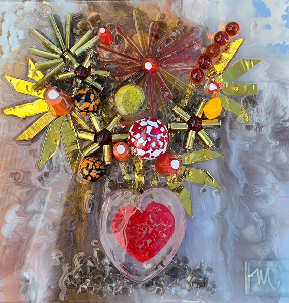 Flowers in Heart Vase 12x12